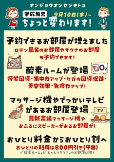「おふろ」(5部屋)の状況 ※利用状況の目安 『空いています』:空室が【4~5】部屋 『まだ余裕あります』:空室が【2~3】部屋 『少し混んでいます』:空室が【1】部屋 『満室です』:空室が【0】部屋 「〇〇とおふろ」(9部屋)のご案内 「〇〇とおふろ」は予約ができます 詳しくは予約サイトをご参照ください。