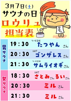 【サウナの日】ロウリュスケジュール